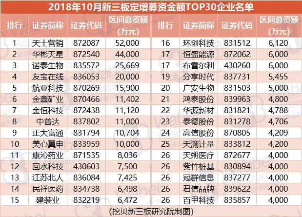 附:2018年10月新三板定增募資金額TOP30企業(yè)名單