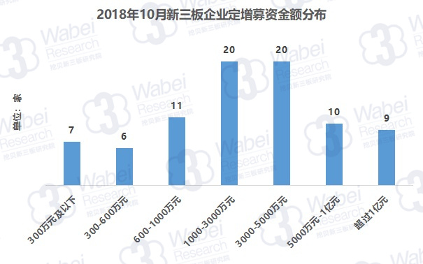 挖貝新三板研究院最新出爐的《2018年10月新三板企業(yè)定增募資報(bào)告》顯示,上月,天士營(yíng)銷(872087)募資金額最大,為5.2億元;慶泉寵物(871608)募資金額最小,為90萬(wàn)元。