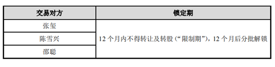 預(yù)案顯示,根據(jù)交易協(xié)議,交易對(duì)方張璽、陳雪興、邵聰于本次交易中直接獲得的上市公司定向可轉(zhuǎn)換債券的鎖定情況如下: