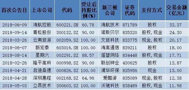 上市公司海航控股計劃并購海航技術(shù)61%的股權(quán),涉及金額33.4億元,海航技術(shù)已于今年4月終止掛牌新三板。值得一提的是,同于11月9日,海航控股宣布該并購事項終止。