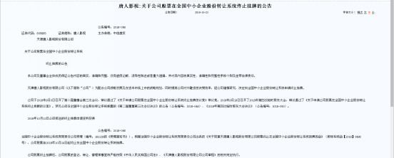 而另外一些新三板影視股的摘牌原因是業(yè)績(jī)差,盈利還不夠每年維護(hù)新三板掛牌的費(fèi)用,同時(shí)新三板的流動(dòng)性太差、融資難,呆在新三板沒多大益處不過徒增成本而已。有些甚至差到無法披露年報(bào)直接被股轉(zhuǎn)系統(tǒng)摘牌。
