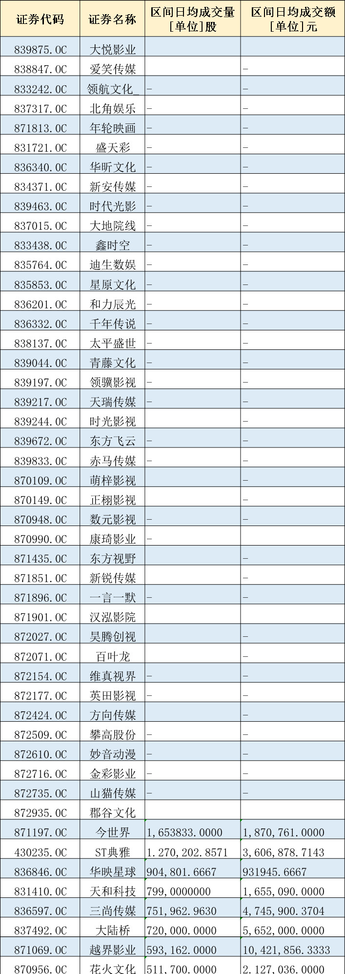 A股影視股在成交量和成交金額方面真是吊打新三板,一個(gè)在天上,一個(gè)在地下。