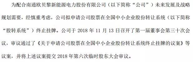 歐貝黎11月13日公告,公司已經(jīng)計(jì)劃申請(qǐng)終止掛牌新三板。