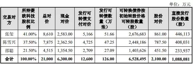 其中,以發(fā)行可轉(zhuǎn)換債券的方式支付對(duì)價(jià)1.26億元,以發(fā)行股份的方式支付對(duì)價(jià)2100萬(wàn)元,以現(xiàn)金的方式支付對(duì)價(jià)6300萬(wàn)元?,F(xiàn)金支付,來(lái)源于賽騰股份所募集的配套資金或自有及自籌資金。