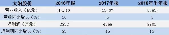 ▲太陽(yáng)股份近幾年業(yè)績(jī)情況