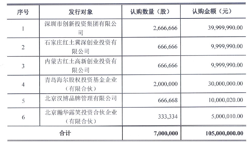 這次認(rèn)購多牛傳媒的投資者共有6名,包括深圳市創(chuàng)新投資集團有限公司、石家莊紅土冀深創(chuàng)業(yè)投資有限公司、青島海爾股權(quán)投資基金企業(yè)(有限合伙)等知名機構(gòu)投資者。
